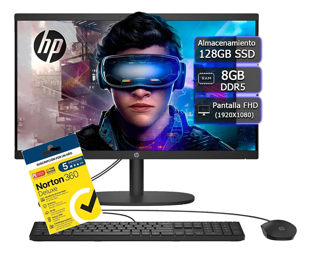 All In One Hp 22-dg0009la Intel N100 128gb 8gb Ram Ddr5 +kit Negro (Reacondicionado)