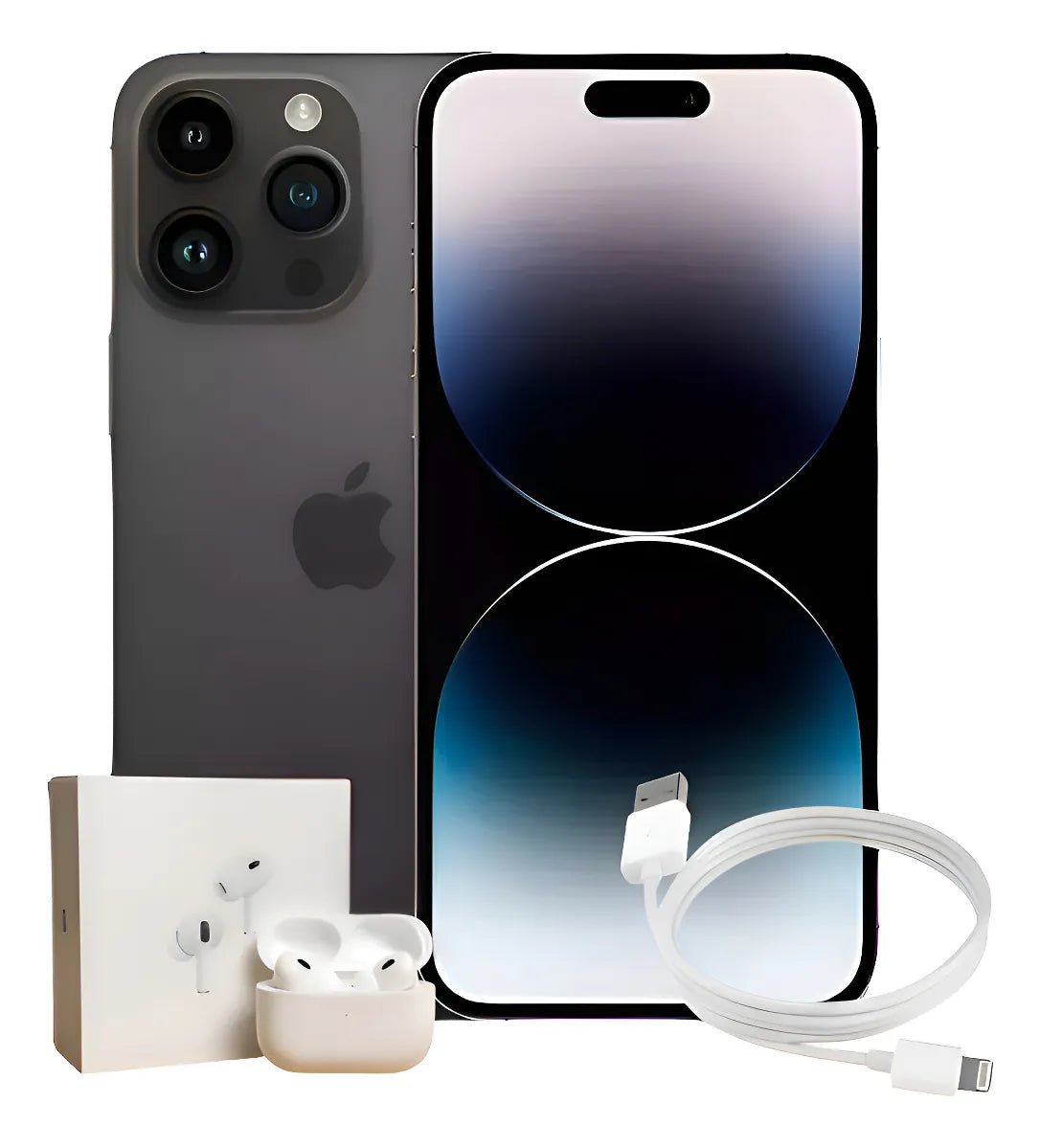 El iPhone 14 Pro Max 256GB en color Negro Espacial combina rendimiento profesional, diseño sofisticado y tecnología avanzada. Equipado con el chip A16 Bionic, pantalla Super Retina XDR con ProMotion y el innovador Dynamic Island, ofrece una experiencia fluida, brillante y completamente inmersiva.