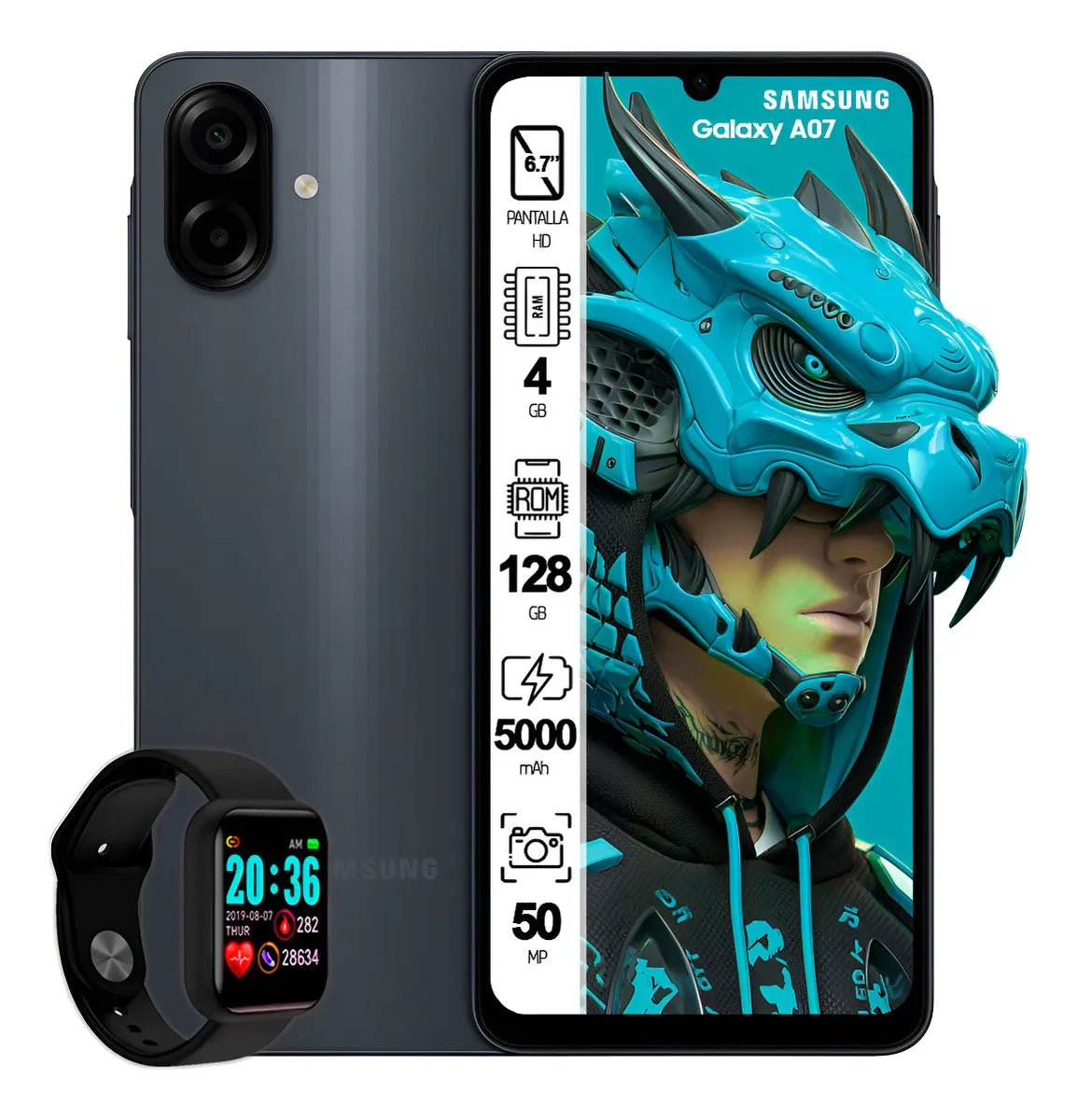 Vive una experiencia móvil superior con el Samsung Galaxy A07, el smartphone que combina rendimiento, diseño y tecnología premium. Con 4GB de RAM y 128GB de almacenamiento, disfruta de una navegación fluida, espacio amplio y velocidad en cada tarea.