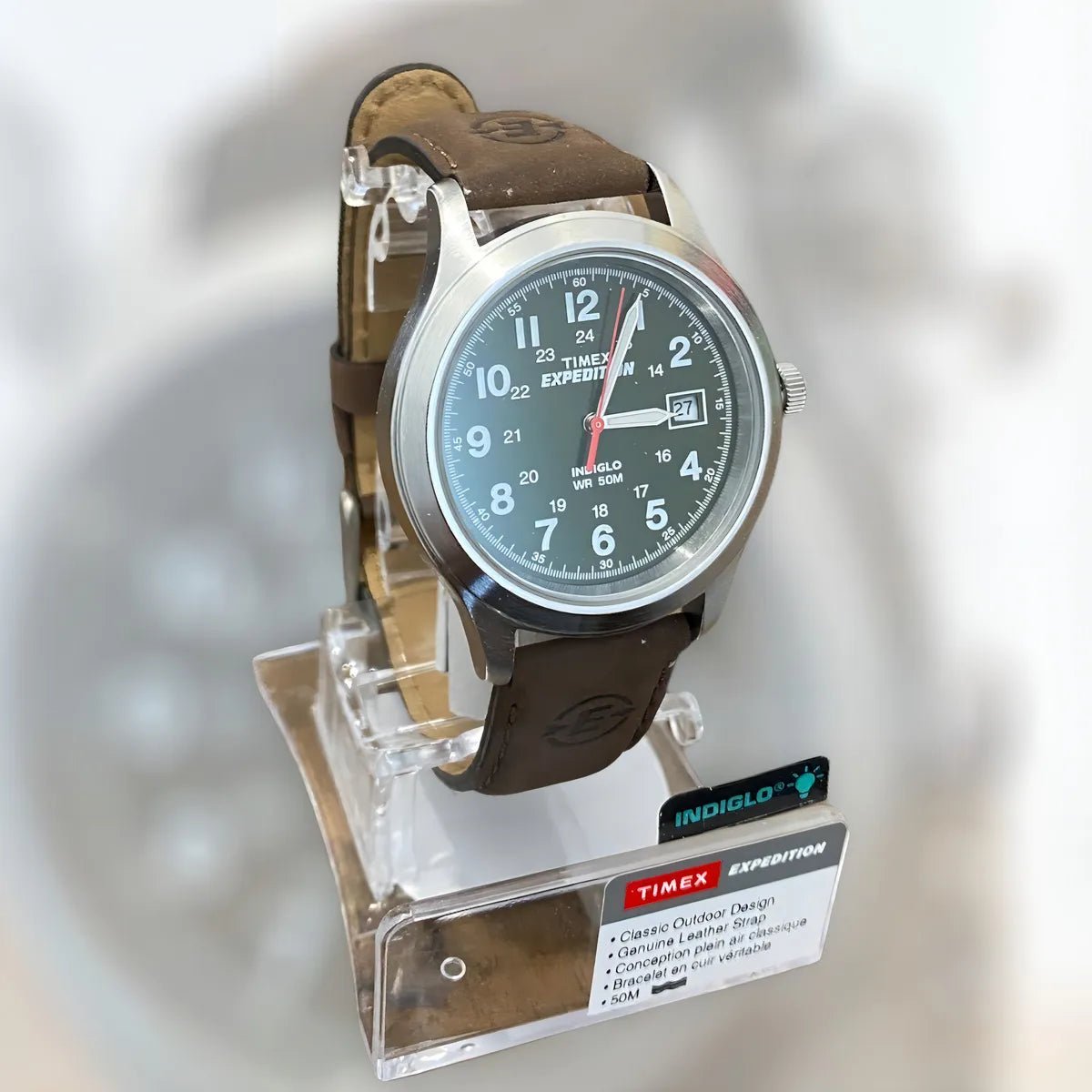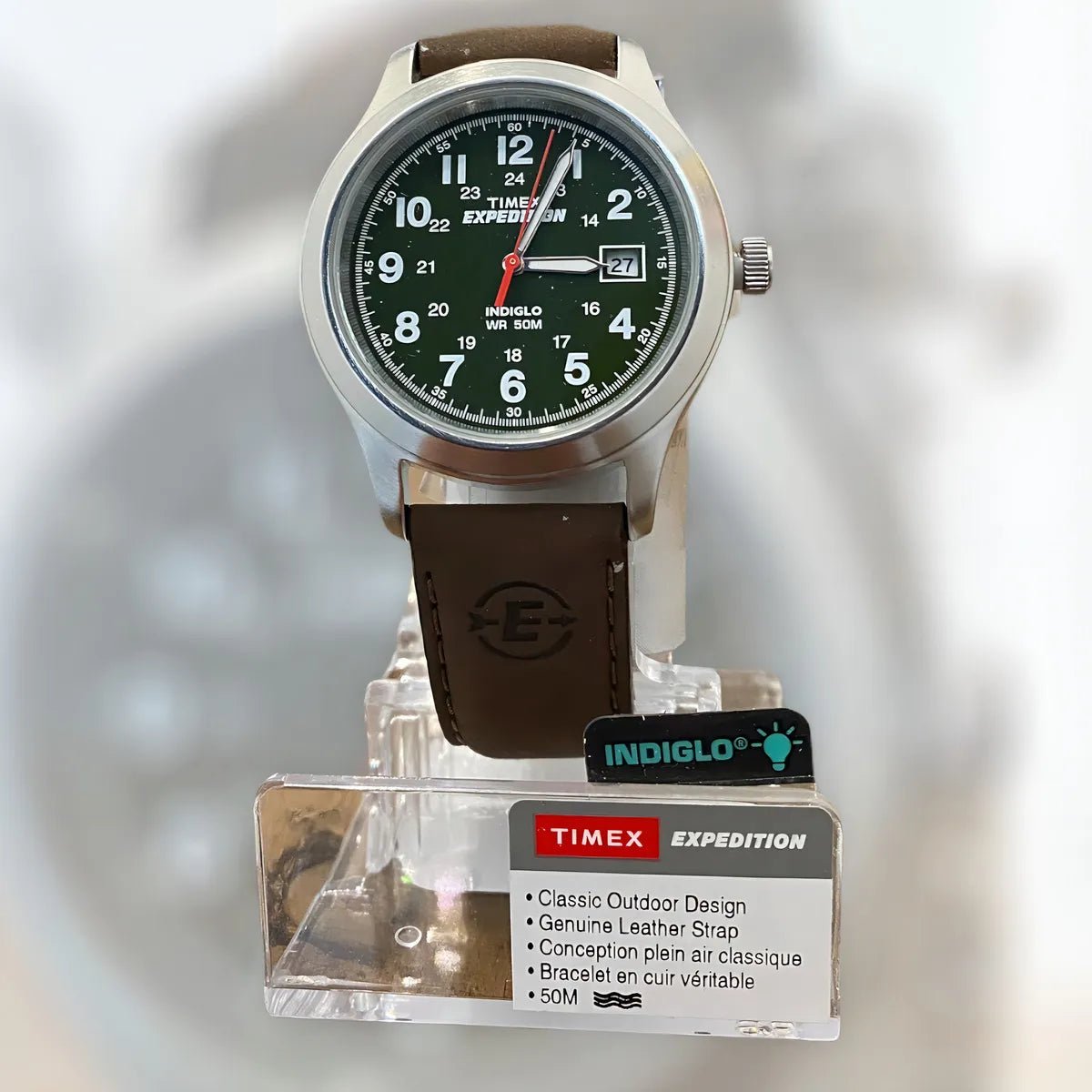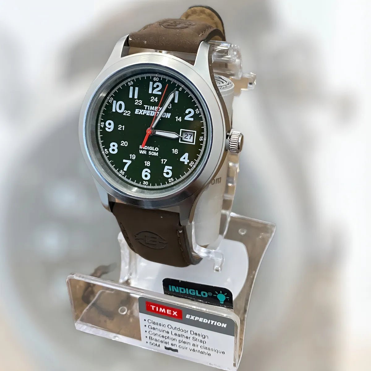 Su carátula verde con números grandes y claros garantiza una lectura sencilla, mientras que la tecnología INDIGLO® Night-Light ilumina la esfera con solo presionar un botón, permitiéndote ver la hora incluso en la oscuridad. Con un tamaño de 39 mm, logra el equilibrio perfecto entre comodidad y presencia en la muñeca.