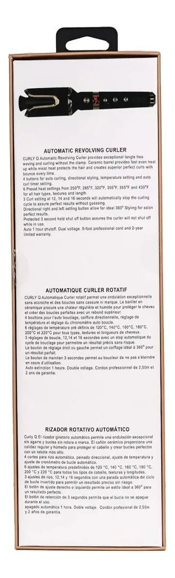El Rizador Giratorio Automático Level Pro 3.0 Curly Q 360 está diseñado para ofrecerte rizos definidos, duraderos y con brillo profesional, sin esfuerzo. Gracias a su tecnología giratoria automática, moldea el cabello en segundos, creando rizos naturales o ondas glamorosas con un solo movimiento.