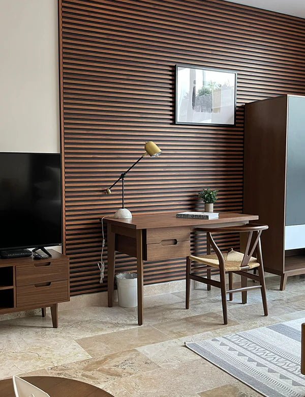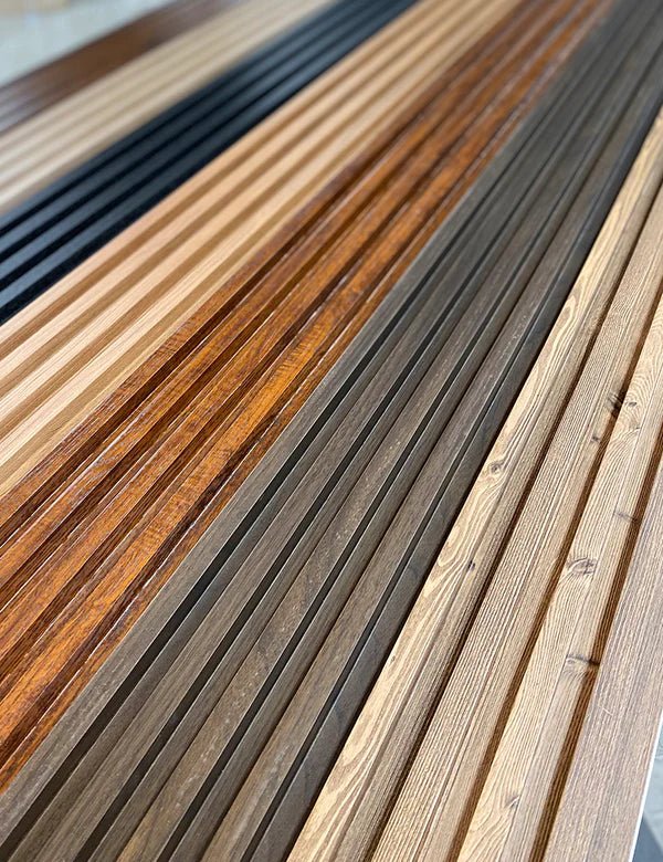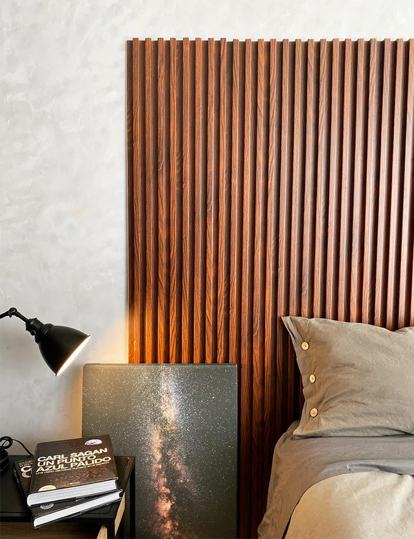Lambrin WPC Interior Color Encino El panel WPC para interiores está compuesto por un 60% de resina de madera y un 40% de PVC, y está acabado con un revestimiento de impresión texturizado que le confiere el aspecto de la madera.
